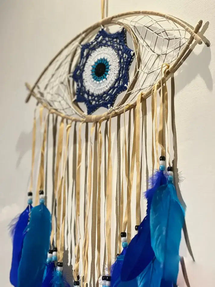 The Evil Eye Wall Art with Hanging Feathers combines protective symbolism with delicate craftsmanship. Featuring the iconic evil eye motif, this piece is enhanced by soft, hanging feathers that add texture and movement. Designed to deflect negative energy, it serves both as a spiritual safeguard and a unique decorative element. Its thoughtful design makes it an ideal choice for those seeking meaningful art that complements a variety of interior styles.